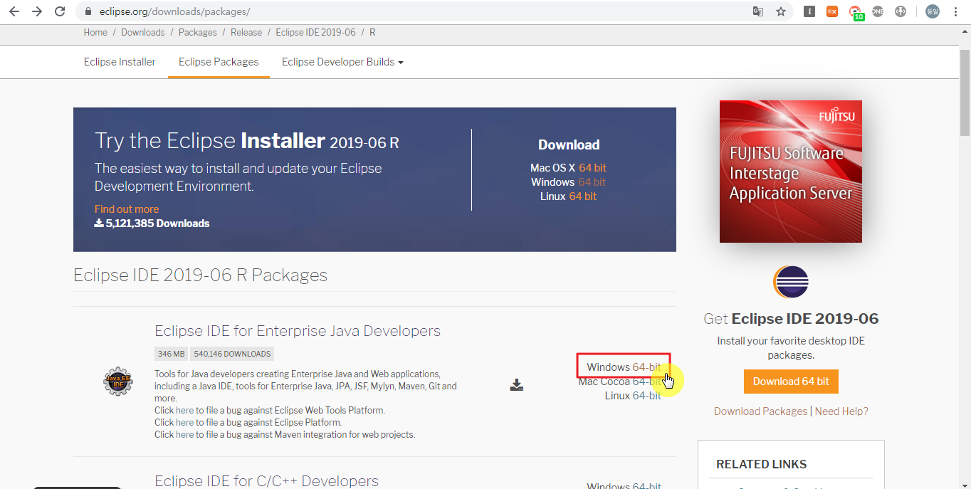 1. Eclipse Packages로 접속!! 후 64bit 클릭!
