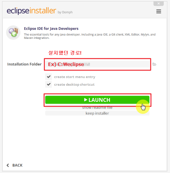 지정해주세요!! 이전에 이클립스