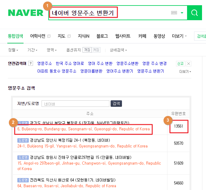 1. 검색 : 네이버 영문주소 변환기