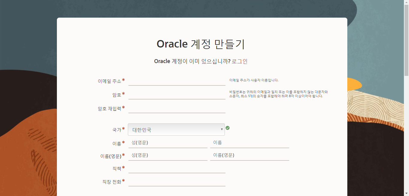 안녕하세요 :) 컴클로딩 입니다. 오늘은 오라클 계정 만들기에 대해 포스팅하려고 합니다. 자바를 다운받다가 갑자기 회원가입 창이 뜨기도 하죠?! 이럴땐 회원가입을 해야 다운로드가 진행되기도 하죠. 처음 자바를 접한 분들은 어떻게 작성해야하는지 어려움을 느낄 수 있죠. 왜냐하면 저도 그랬거든요!! 하지만 오라클 계정 만들기 어렵지 않아요~ 제가 차근차근 설명해드릴게요!!
