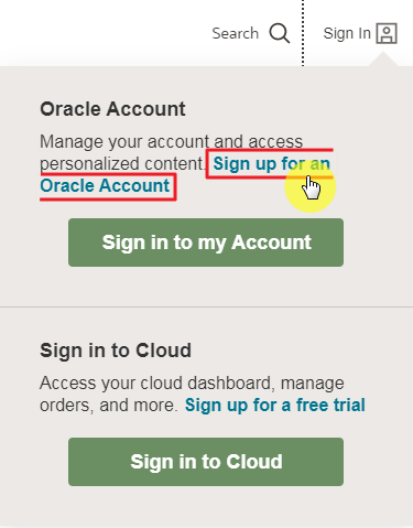 2. [Sign up for Oracle Account]를 클릭!!