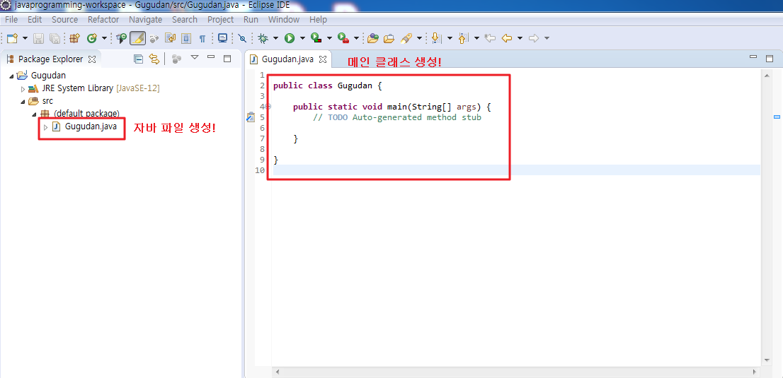 7. 프로젝트, 메인클래스, 자바파일 생성 확인!