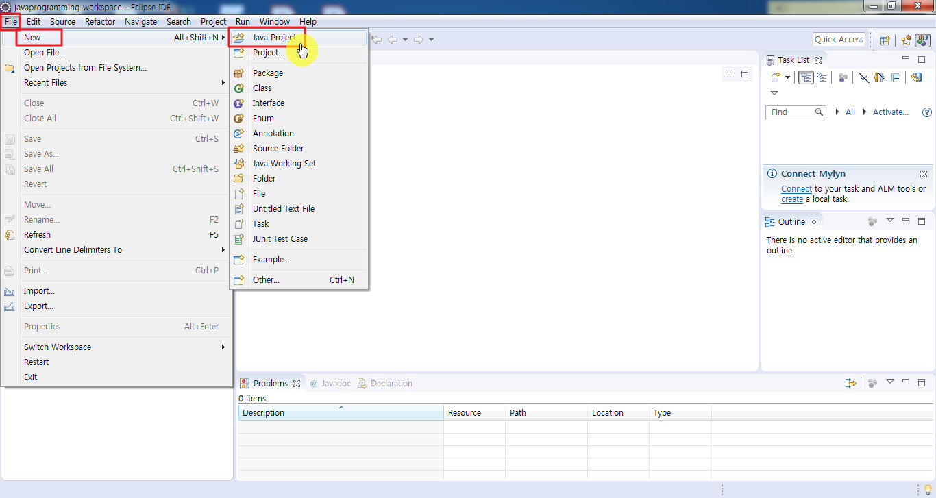 [New]를 눌러도 [Java Project]가